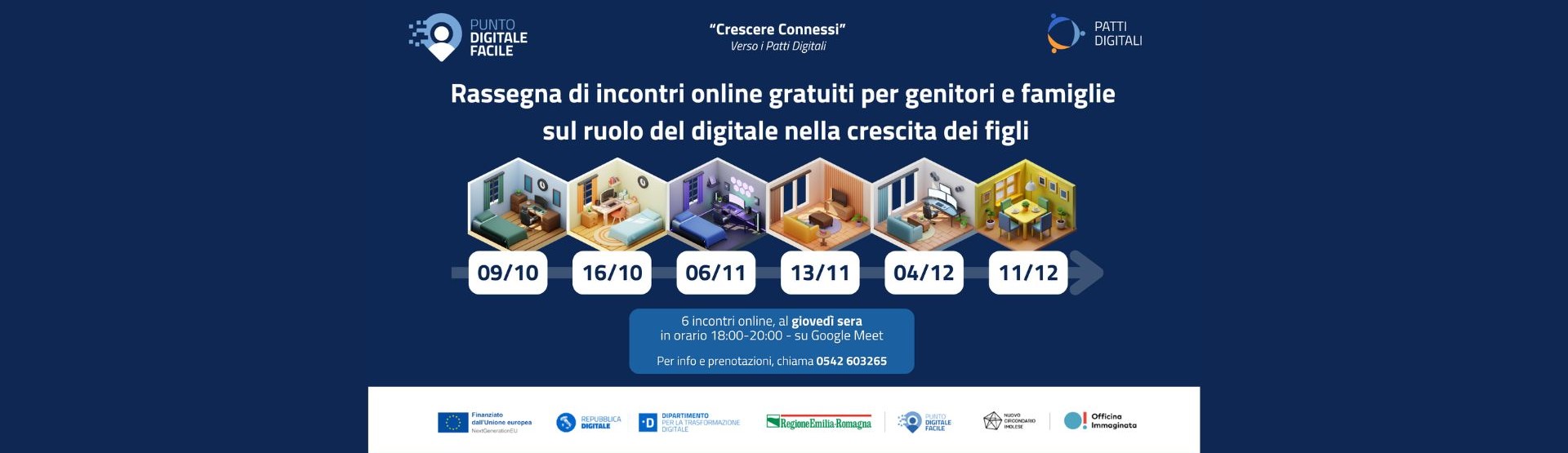Ieri, giovedì 9 ottobre, si è svolto, con grande partecipazione di pubblico, il primo di sei incontri online della rassegna “Crescere connessi – Verso i Patti Digitali”, un’iniziativa promossa dal Nuovo Circondario Imolese insieme ai Comuni del territorio e all’Azienda USL di Imola, nell’ambito del progetto Digitale Facile.