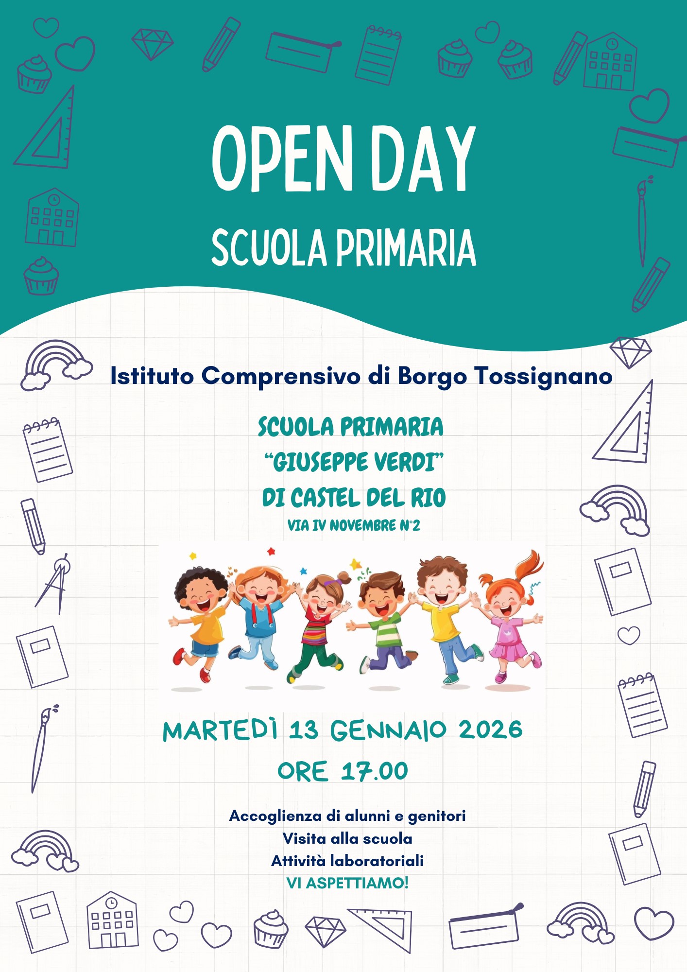 L’Istituto Comprensivo di Borgo Tossignano è lieto di invitarvi agli Open Day organizzati presso i plessi della Vallata del Santerno per la Scuola Primaria.